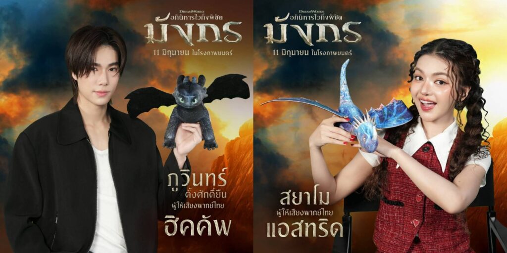 กรุงเทพฯ 27 พฤษภาคม 2568 – “ภูวินทร์ ตั้งศักดิ์ยืน” ประกบ “สยาโม สยาภา สิงห์ชู” ร่วมให้เสียงไทยครั้งแรก ในภาพยนตร์ How To Train Your Dragon อภินิหารไวกิ้งพิชิตมังกร เวอร์ชั่นคนแสดง โดย “ภูวินทร์ ตั้งศักดิ์ยืน” ให้เสียงเป็น “ฮิคคัพ” ลูกชายของหัวหน้าเผ่าชาวไวกิ้งที่อยู่บนเกาะเบิร์ค สถานที่ซึ่งไวกิ้งและมังกรเป็นศัตรูคู่อาฆาต แต่เขากลับสร้างมิตรภาพกับมังกรได้อย่างเหลือเชื่อ และ “สยาโม สยาภา สิงห์ชู” ให้เสียงเป็น “แอสทริด” สาวน้อยที่มีความดุดันและทะเยอทะยาน มีจิตใจกล้าหาญและเด็ดเดี่ยว แฟน ๆ ที่สนใจสามารถซื้อบัตรชมภาพยนตร์ล่วงหน้าเพื่อชมผลงานการพากย์ของทั้ง 2 คนได้ ตั้งแต่วันที่ 29 พฤษภาคม นี้เป็นต้นไป และเตรียมตัวกางปีกออกไปกับการผจญภัยของเขี้ยวกุดได้ใน How To Train Your Dragon อภินิหารไวกิ้งพิชิตมังกร ไลฟ์แอ็คชัน 11 มิถุนายนนี้ ในโรงภาพยนตร์เท่านั้น