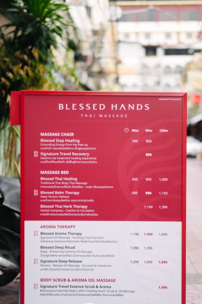 Blessed Hands Thai Massage มาพร้อมคอนเซปต์Modern Chinese Minimal ที่สะท้อนความเรียบง่ายและกลิ่นอายของวัฒนธรรมจีนในเยาวราช ทุกพื้นที่ในร้านจึงถูกจัดวางให้ดูโปร่ง สบายตา และเต็มไปด้วยความอบอุ่นแบบมีสไตล์ อีกทั้งยังมีโซนถ่ายรูปที่สวยคลีนตั้งแต่โถงทางเข้าไปจนถึงภายในห้องนวด