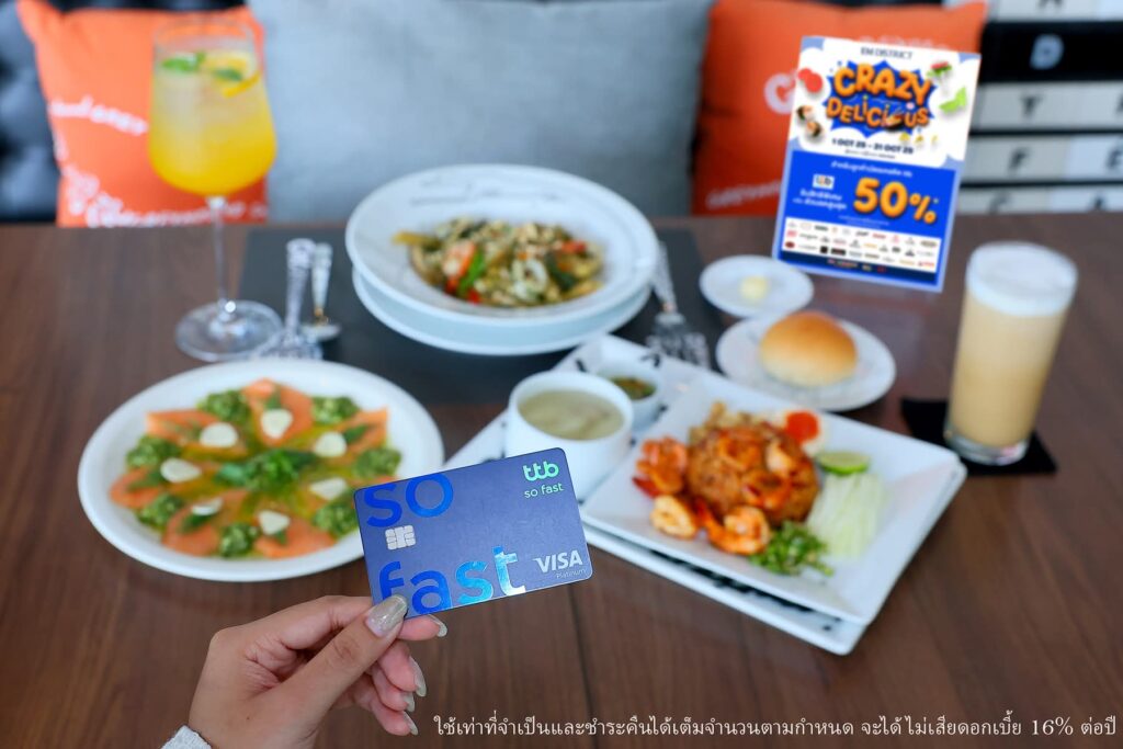 นอกจากโปรโมชันสุดเอ็กซ์คลูซีฟในการช้อปปิ้งแล้ว ยังมีแคมเปญ CRAZY DELICIOUS ที่มอบสิทธิพิเศษให้กับ ผู้ถือบัตรเครดิตทีทีบี สำหรับรับประทานอาหารที่ร้านอาหารชั้นนำภายใน เอ็ม ดิสทริค ดังนี้