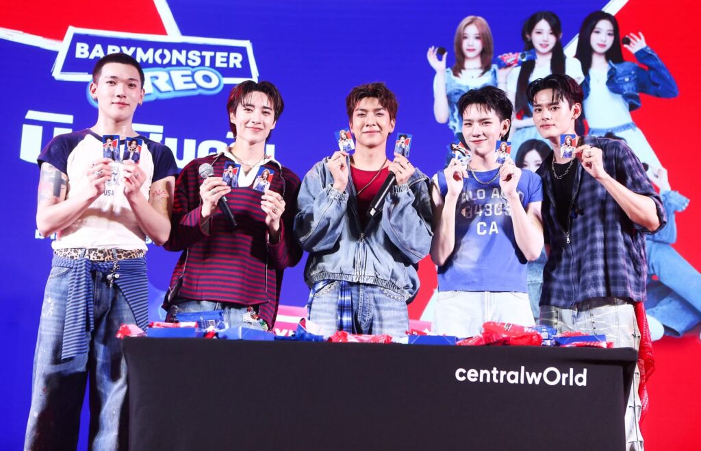 งานเปิดตัวแคมเปญ OREO x BABYMONSTER อย่างเป็นทางการที่ศูนย์การค้าเซ็นทรัลเวิลด์ มีกิจกรรมสนุกๆ มากมาย และได้ต้อนรับขวัญใจ Gen Z อย่าง “คอปเปอร์ – เดชาวัต พรเดชาพิพัฒ” แห่งวง BUS because of you i shine และ 5 หนุ่มวง “PERSES” จั๋ง – วิกร บูรณภิญโญ, เน – ณรัณ วิกัยรุ่งโรจน์, กฤติน – กฤติน สอสูงเนิน, ปาล์ม – พีรวิชญ์ พินธะ, และปลั๊กกี้ – ธรากร คำสิงห์ มาร่วมแบ่งปันประสบการณ์ความอร่อยและโชว์สเตปเท้าไฟ พร้อมชวนแฟนคลับร่วมกิจกรรม #TwistLickDance กันอย่างคึกคัก ณ ลานอีเดน ศูนย์การค้าเซ็นทรัลเวิลด์