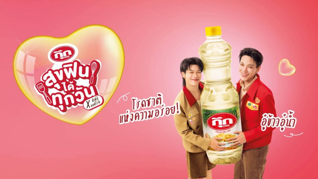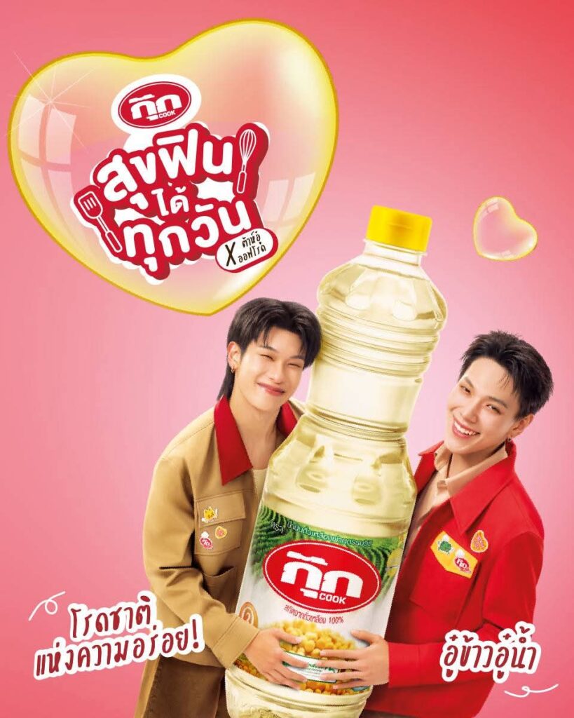ทั้งนี้ ด้วยคาแรคเตอร์ของทั้งคู่ ที่กล้า “ฟิน” กล้า “ลอง” ไม่กลัวที่จะลองอะไรสนุกๆ เช่นเดียวกับที่น้ำมันพืชกุ๊กที่มีผลิตภัณฑ์หลากหลายทั้งน้ำมันถั่วเหลือง น้ำมันดอกทานตะวัน และน้ำมันคาโนลา ที่สามารถเลือกใช้ได้ทั้ง เมนูทอด ผัด รวมถึง deep fried จะช่วยเสริมภาพลักษณ์ของกุ๊กให้มีความทันสมัย พร้อมขยายฐานลูกค้าไปสู่กลุ่มคนรุ่นใหม่ได้อย่างรวดเร็วและมีประสิทธิภาพมากยิ่งขึ้น ที่สำคัญทั้งคู่ยังเป็นตัวแทนของคนรุ่นใหม่ที่สนใจการทำอาหาร มีภาพลักษณ์สดใส ร่าเริง และพัฒนาตัวเองอยู่ตลอดเวลา ซึ่งสอดคล้องกับ DNA ของน้ำมันพืชกุ๊ก ที่มีการพัฒนาคุณภาพสินค้าเพื่อสุขภาพที่ดีของผู้บริโภคอยู่เสมอ จะช่วยตอกย้ำคีย์เมสเสจหลักว่าการปรุงอาหารด้วยน้ำมันพืชกุ๊ก คือ “ความสุขที่เกิดขึ้นได้ทุกวัน”