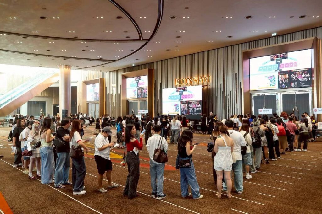 บรรยากาศวันแรก 27 ธ.ค. 68 ของงาน “Amazing Thailand Countdown 2026 at ICONSIAM” เริ่มต้นขึ้น แฟนคลับศิลปิน T-POP และนักท่องเที่ยวทั้งชาวไทยและชาวต่างชาติ ต่างทยอยเดินทางมาเข้าแถวเพื่อรับบัตรและรับคิวเข้างานกันอย่างต่อเนื่องตั้งแต่ช่วงเช้า บรรยากาศเต็มไปด้วยความคึกคัก เพื่อเตรียมตัวสำหรับค่ำคืนแห่งความสนุกส่งท้ายปี