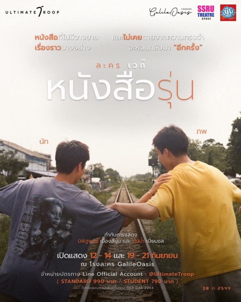 มาย้อนความทรงจำไปกับคู่ ‘ภพ – นัท’ ใน ‘ละครเวที’ เรื่อง ‘หนังสือรุ่น’ จัดแสดง ณ โรงละคร GalileOasis โดยมีรอบการแสดงเวลา 14.00 น. และ เวลา 18.30 น. ในวันที่ 12 – 14 กันยายน และ 19 – 21 กันยายน 2568 พิเศษกับการเพิ่มบัตร Early Bird จำนวน 50 ที่นั่ง พร้อมลดราคา 100 บาท เฉพาะรอบวันที่ 12-14 กันยายน สามารถซื้อบัตรได้ผ่านทาง Line : @UltimateTroop และสามาถติดตามรายละเอียดเพิ่มเติมได้ผ่านทาง Facbook : UltimateTroop, IG : ultimatetroopofficial, TikTok : UltimateTroop, X : UltimateTroop และ YouTube : UltimateTroop Official