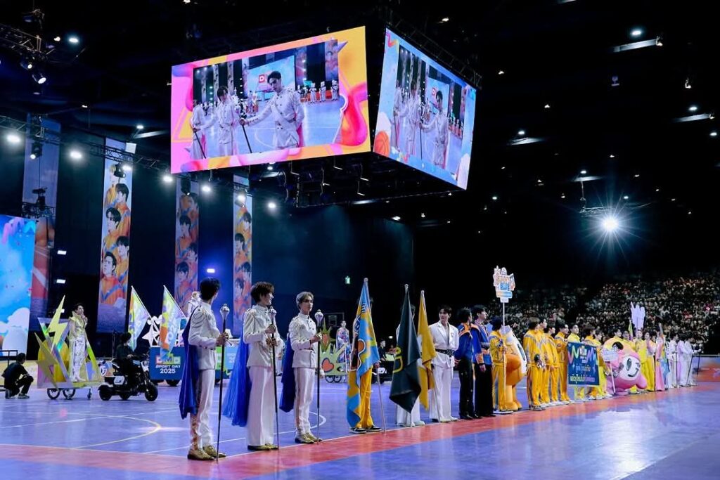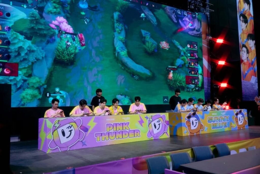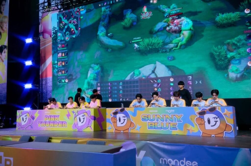 ไม่ใช่แค่กีฬาที่ใช้แรง ใช้พลัง ลงสนามแข่งจริงเท่านั้น ยังมี E-SPORT ให้แข่งความเจ๋งกันอีก โดย “แม้ก – มาร์ค – ปาร์ค ลาเต้ – คิม” จากทีม PINK THUNDER เจอกับ “ซี – ทอมมี่ – น้ำปิง – เซฟ – เจเจ” จากทีม SUNNY BLUE แม้จะเป็น E-SPORT แต่ก็เล่นกันได้อย่างสนุก พลิกไป พลิกมา ตลอดทั้งเกม และทำให้ทีม SUNNY BLUE ลุกขึ้นเฮกับการชนะในเกมนี้ โดยมี “ทอมมี่” ที่เป็น MVP ของเกม