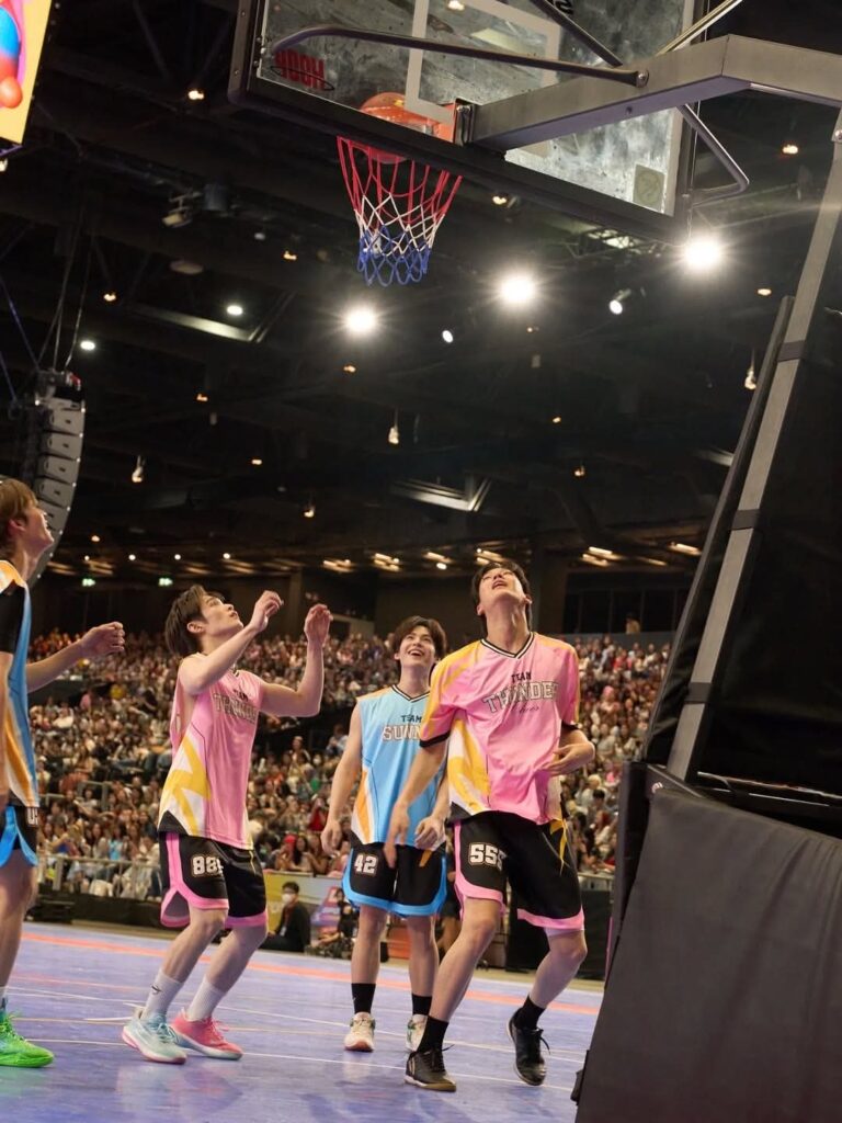 กรี๊ดสนั่นสนามตั้งแต่แมตช์แรกด้วยการแข่งบาสเกตบอล ที่มีนักกีฬาจากทีม PINK THUNDER อย่าง “ป๋อ – เจมส์ – เน็ต – มาร์ค – อู่อู๋ – เก่ง และ ริวจิน” ส่วนทีม SUNNY BLUE ส่ง “โทมัส – ตี๋ตี๋ – แพทจิ – เฟิร์สวัน – ปัง – ติวเตอร์ และ นอร์ท” มาร่วมแข่งขัน แม้จะเป็นพี่น้องร่วมค่าย แต่เมื่อลงสนามทุกคนต่างใส่เต็มเพื่อทำคะแนนให้กับทีม เอาทำมันส์ตั้งแต่เริ่ม ลุ้นทุกครั้งที่ชู้ตลูกบาส และเป็นทีม SUNNY BLUE ที่ครองตำแหน่งผู้ชนะในการแข่งบาสไปได้ โดยยกให้ “โทมัส” เป็น MVP ของแมตช์นี้