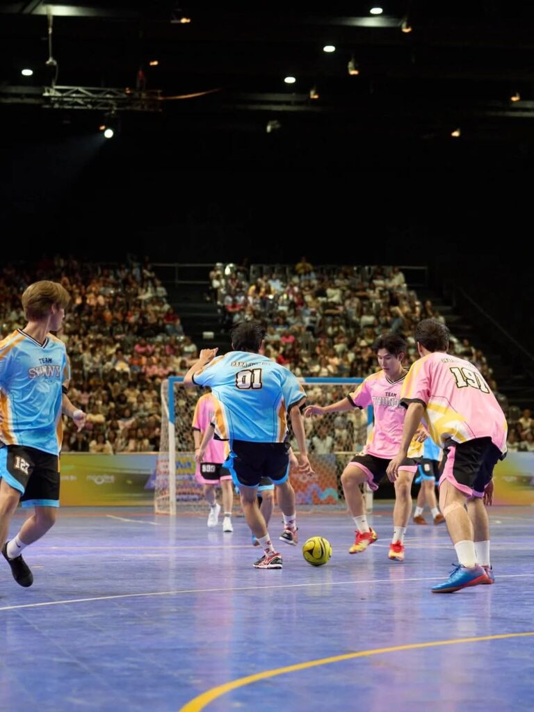 เสียงเชียร์ไม่ต้องพัก เพราะต้องมากรี๊ดกันต่อกับการแข่งฟุตซอล โดย ทีม PINK THUNDER ส่ง “จิมมี่ – ปาร์ค – ก้อง -เก่ง – เติ้ล – อู่อู๋ – ริวจิน” มาวัดฝีเท้ากับ “ป็อปปี้ – ติวเตอร์ – เจ็ม – เซฟ – ปัง – ทอมมี่” จากทีม SUNNY BLUE โดยสับขาหลอกกันมันส์ เพื่อให้ทีมของตัวเองครองบอลและยิงประตูให้ได้มากที่สุด พร้อมกับการดวลจุดโทษ ที่ทำเอาทุกคนนั่งไม่ติด ลุ้นกันตัวโก่ง โดยเป็นทีม PINK THUNDER ที่เอาชนะไปได้