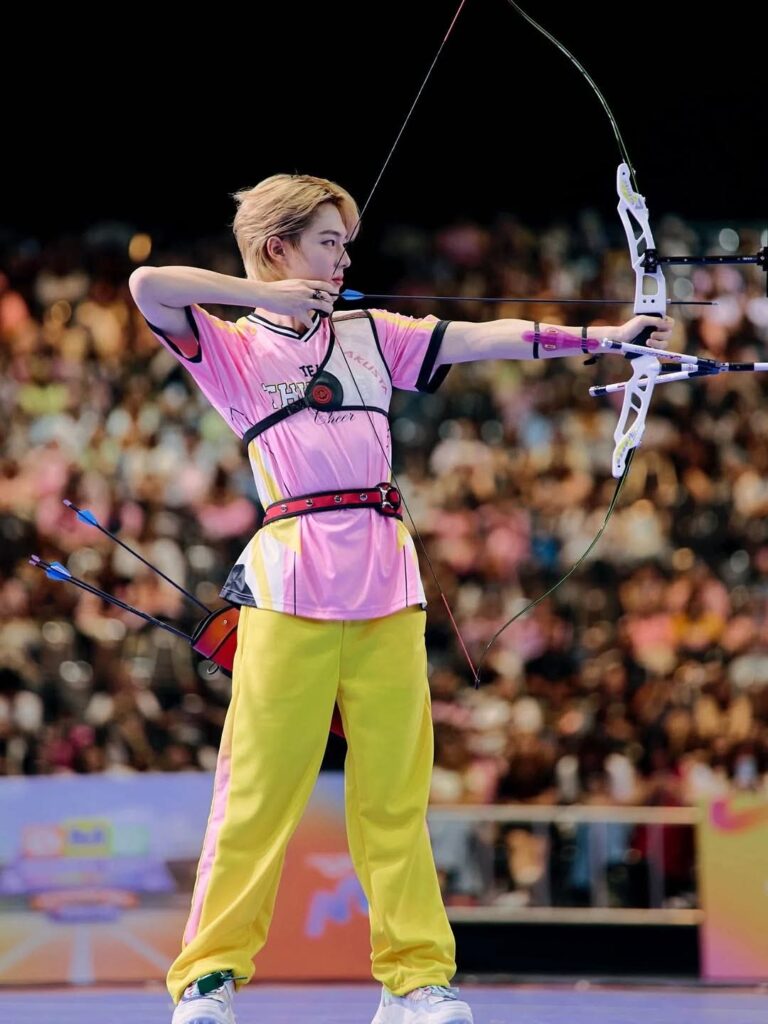 และต้องวัดความแม่นยำกันด้วยการยิงธนู โดย PINK THUNDER ได้ “นุนิว – ริวจิน – ลาเต้ และ คิม” มาลงสนามแข่งโดยเจอกับทีม SUNNY BLUE ที่มี “ซี – เน็ต – โอม – เจเจ” และความเป๊ะของทีม PINK THUNDER ทำให้ได้คะแนนมากที่สุด