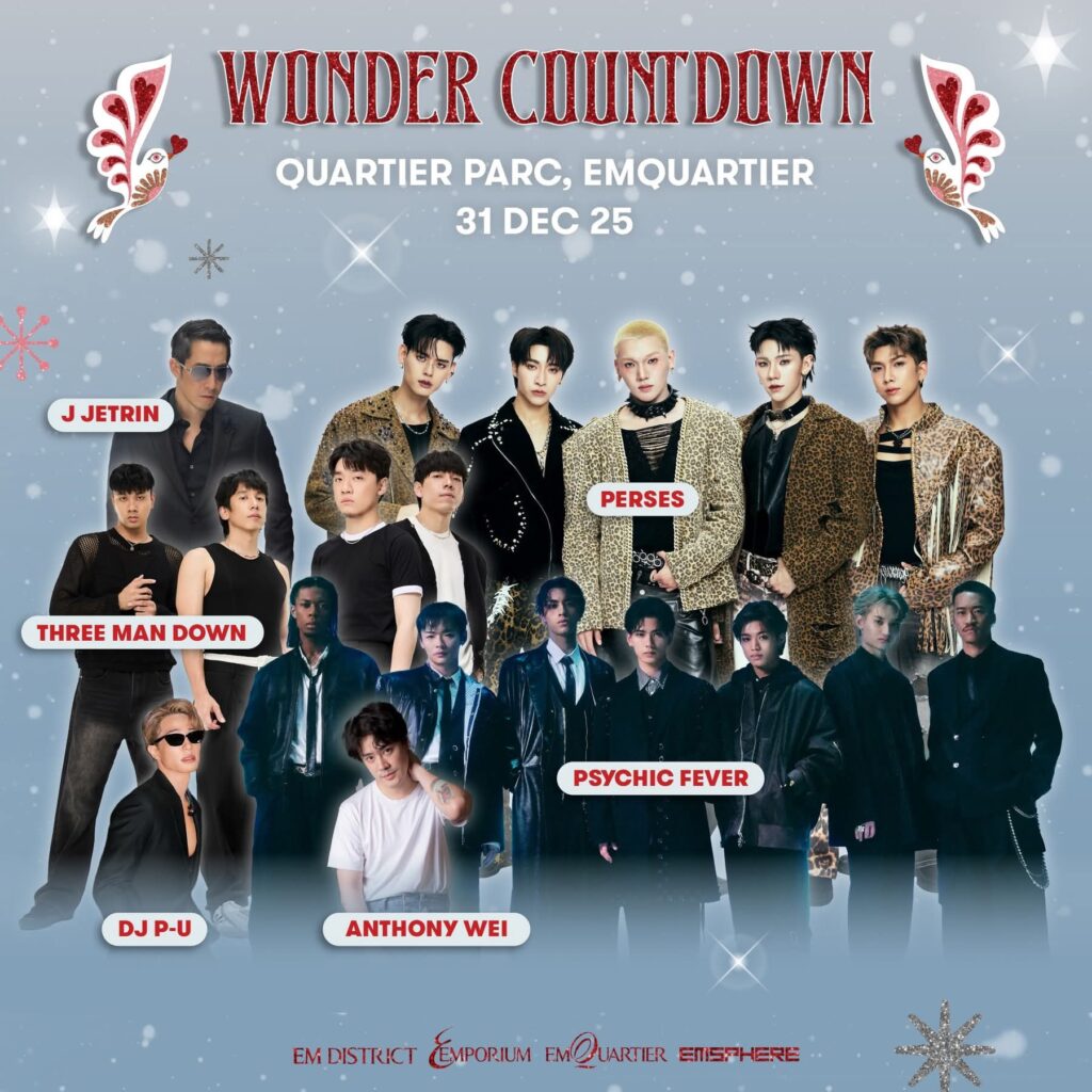 นอกจากนั้น ยังยกทัพศิลปินชื่อดังแถวหน้าของเมืองไทยร่วมสร้างสีสันและความสนุกแบบ นัน-สต็อป ร่วมเคาท์ดาวน์นับถอยหลังสู่ปีใหม่ 2026 ในบรรยากาศสุดอลังการ กับการแสดงคอนเสิร์ต แสง สี เสียง สุดตระการตาที่จะร่วมมอบความประทับใจให้ทุกคนส่งท้ายปี สร้างแลนด์มาร์กแห่งความสุขใจกลางถนนสุขุมวิท ด้วยกิจกรรม WONDER COUNTDOWN สนุก สุดมันส์กับการแสดงจากศิลปินชั้นนำของเมืองไทยและต่างประเทศ ได้แก่ เจ เจตริน, บุรินทร์, TREE MAN DOWN, PERSES ศิลปิน J-POP PSYCHIC FEVER,ANTHONY WEI และดีเจชั้นนำ, DJ P-U