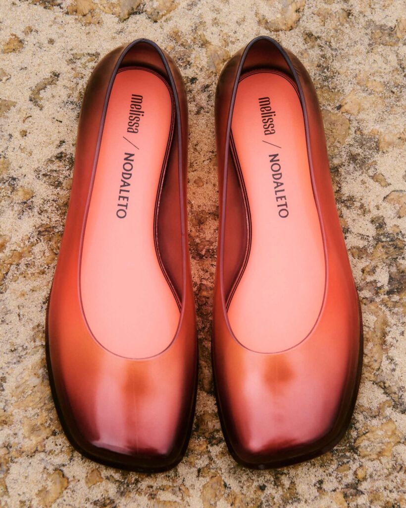 ในครั้งนี้ melissa ได้เดินหน้าร่วมงานกับแบรนด์ที่มีวิสัยทัศน์เพื่อยกระดับความคิดสร้างสรรค์ โดยคอลเลกชั่นสุดพิเศษ melissa x Nodaleto นี้ ได้นำรองเท้าเจลลี่ที่เป็นซิกเนเจอร์ของ melissa ผสานเข้ากับความขี้เล่นในสไตล์ลักชัวรีของ Nodaleto ถ่ายทอดผลงานที่เปี่ยมด้วยพลัง และสะท้อนภาพลักษณ์ของความเป็นผู้หญิงยุคใหม่ โดดเด่นด้วยโทนสีเกรเดียนต์ที่ได้รับแรงบันดาลใจจากพระอาทิตย์ขึ้นและตกในฤดูร้อน ถ่ายทอดอารมณ์โรแมนติกที่ทั้งคลาสสิกและร่วมสมัยในเวลาเดียวกัน ประกอบด้วยรุ่น Ruby Ballet Flats และ Possession Sandal ที่ผลิตจากวัสดุ Melflex® อันเป็นเอกลักษณ์ มอบสัมผัสที่ผสมผสานทั้งความล้ำสมัย ความสบาย และความหรูหราในทุกย่างก้าว