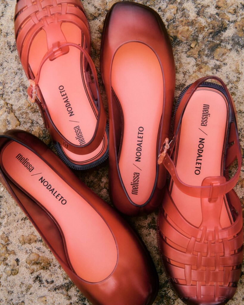 ในครั้งนี้ melissa ได้เดินหน้าร่วมงานกับแบรนด์ที่มีวิสัยทัศน์เพื่อยกระดับความคิดสร้างสรรค์ โดยคอลเลกชั่นสุดพิเศษ melissa x Nodaleto นี้ ได้นำรองเท้าเจลลี่ที่เป็นซิกเนเจอร์ของ melissa ผสานเข้ากับความขี้เล่นในสไตล์ลักชัวรีของ Nodaleto ถ่ายทอดผลงานที่เปี่ยมด้วยพลัง และสะท้อนภาพลักษณ์ของความเป็นผู้หญิงยุคใหม่ โดดเด่นด้วยโทนสีเกรเดียนต์ที่ได้รับแรงบันดาลใจจากพระอาทิตย์ขึ้นและตกในฤดูร้อน ถ่ายทอดอารมณ์โรแมนติกที่ทั้งคลาสสิกและร่วมสมัยในเวลาเดียวกัน ประกอบด้วยรุ่น Ruby Ballet Flats และ Possession Sandal ที่ผลิตจากวัสดุ Melflex® อันเป็นเอกลักษณ์ มอบสัมผัสที่ผสมผสานทั้งความล้ำสมัย ความสบาย และความหรูหราในทุกย่างก้าว