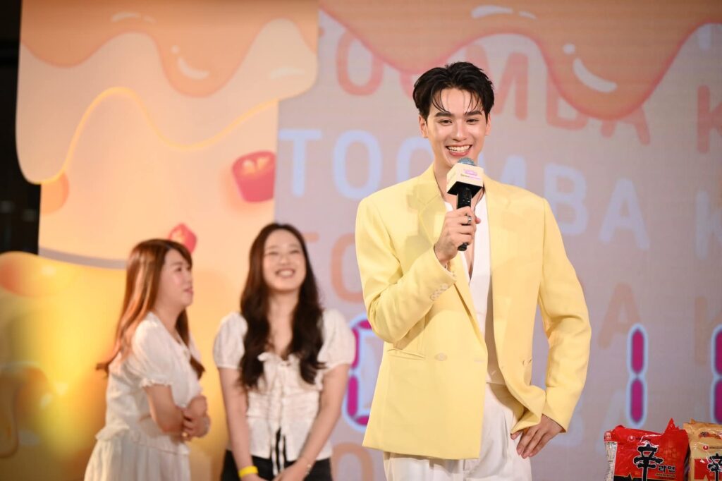 เก่ง – หฤษฎ์ บัวย้อย และ น้ำปิง – นภัสกร ปิงเมือง กล่าวถึงกิจกรรม “Say Cheese Say Toomba!” ในครั้งนี้ว่า “รู้สึกดีใจและเป็นเกียรติมากที่ทางนงชิม เปิดโอกาสให้พวกเราได้ร่วมเป็นส่วนหนึ่งในการส่งต่อความอร่อยของนงชิม ชินรามยอน ทูมบ้า ให้กับแฟนคลับและคนรุ่นใหม่ ซึ่งโดยส่วนตัวพวกเราชอบทานรามยอนกันมาก ๆ อยู่แล้ว และเคยเห็นในโซเชียลมีเดียหลายช่องดังจะมีการทำเมนูรามยอนทูมบ้าซึ่งเห็นแล้วอยากทานมาก ๆ แต่ไม่รู้จะหาทานจากที่ไหน ตอนนี้หมดกังวลแล้วครับ เพราะมี นงชิม ชิน รามยอน ทูมบ้า ที่พัฒนาสูตรมาเป็นรามยอนรสชาติใหม่ที่มีความเข้มข้น มีเนื้อสัมผัสจากเส้นรามยอนแบบพาสต้า และกลิ่นซอสครีมที่เป็นเอกลักษณ์ ทำให้แต่ละคำมีความหอมและรสชาติที่อร่อยกลมกล่อม ดังนั้นเราเลยอยากท้าให้แฟน ๆ ลองทาน นงชิม ชิน รามยอน ทูมบ้า แล้วมาแชร์ความชอบด้วยกันเยอะ ๆ ส่วนกิจกรรมในวันนี้เราทั้งสองคนต้องขอบคุณทุกคนที่มาร่วมเป็นลักกี้แฟนทั้ง 30 คน รวมถึงแฟน ๆ ที่มาช่วยส่งแรงใจเชียร์ และร่วมเอ็นจอยทุกโมเมนต์แห่งความสุขไปพร้อมกัน วันนี้ พวกเราสนุกมาก ๆ ดีใจที่ได้เจอและได้เห็นรอยยิ้มมีความสุขจากทุกคน อยากบอกว่าประทับใจมาก ๆ ครับ”