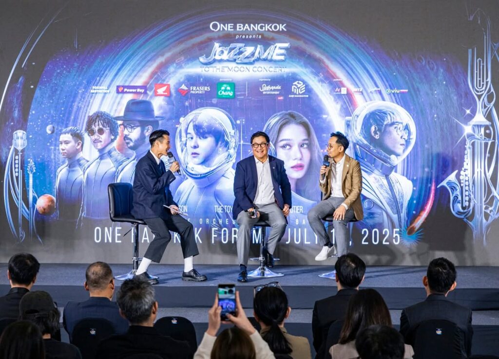 AME IMAGINATIVE (เอเอ็มอี อิมเมจิเนทีฟ) ในเครืออมรินทร์กรุ๊ป จัดงานแถลงข่าว “ONE BANGKOK PRESENTS JAZZ ME TO THE MOON CONCERT” ครั้งแรกของการรวมตัว ที่สุดของศิลปินเหล่า Star Travelers ทั้ง 4 ศิลปิน THE TOYS, VIOLETTE WAUTIER, D GERRARD, THE PARKINSON ในรูปแบบคอนเสิร์ตที่คุณไม่เคยสัมผัสที่ไหนมาก่อน ด้วยการนำเพลงฮิตมาเรียบเรียงใหม่ ผสมผสานกับเสียงดนตรี Jazz อย่างลงตัว โปรดักชันแสง สี เสียงจัดเต็มครั้งยิ่งใหญ่ ใน ปรากฏการณ์คอนเสิร์ตเหนือจินตนาการทะยานสู่ดวงจันทร์ “ONE BANGKOK PRESENTS JAZZ ME TO THE MOON CONCERT” ในวันเสาร์ที่ 19 กรกฎาคม 2568 ณ One Bangkok Forum