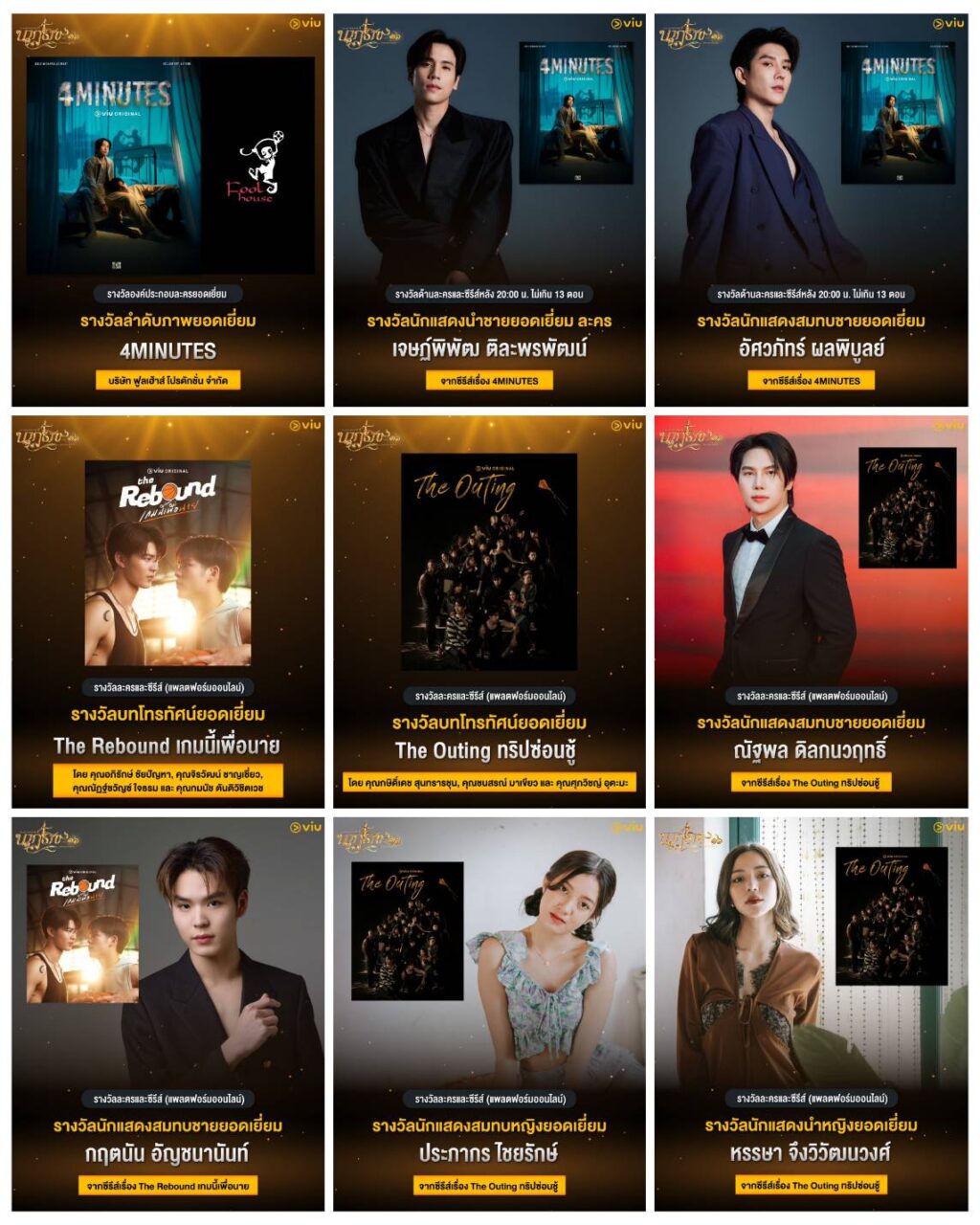 – ประภากร ไชยรักษ์ ได้เข้าชิงจากซีรีส์เรื่อง The Outing ทริปซ่อนชู้ Viu Thailand (วิว ไทยแลนด์) ออกอากาศทาง แอปพลิเคชัน Viu